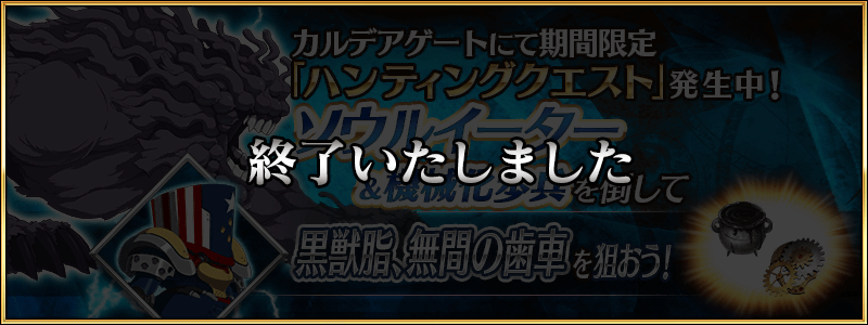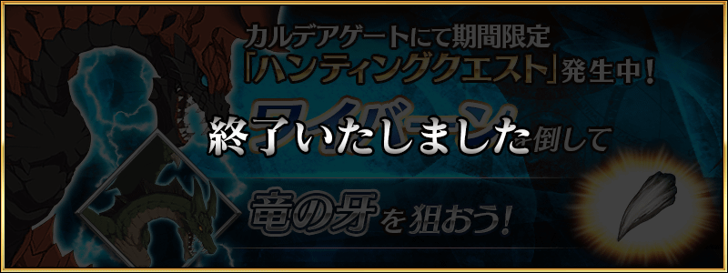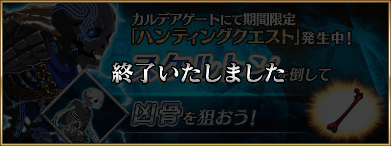 開催期間中、特定のエネミーを対象としたハンティングクエストが日替りでカルデアゲートに出現します。