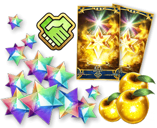 聖晶石 10個 フレンドポイント 2,000pt 叡智の猛火ALL★4(SR) 10枚 黄金の果実 10個 |