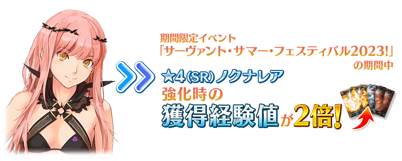 本イベントの期間中は、イベント限定の配布サーヴァント「★4(SR)ノクナレア」を強化した際の獲得経験値が2倍になります。