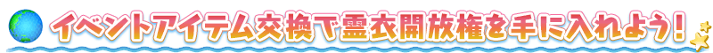 本イベントでは、イベントアイテム交換で上記の霊衣開放権を入手できます。