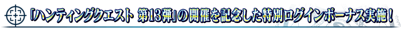 「ハンティングクエスト 第13弾」を記念した特別回数ログインボーナスを実施いたします。