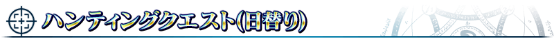 | 9/4(月) 18:00~9/5(火) 17:59に出現するいずれかのハンティングクエストを2回クリアせよ |