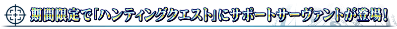 下記の期間中、下表のサーヴァントはすべての「ハンティングクエスト」において、「絆ポイント獲得量がアップ」のボーナスが得られます!