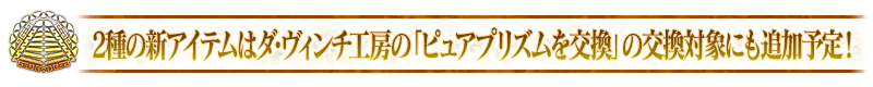 2023年2月14日(火) 13:00より、ダ・ヴィンチ工房の「ピュアプリズムを交換」の交換対象に「黒曜鋭刃」と「太陽皮」が追加されます。