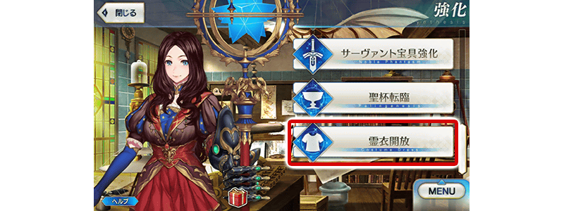 「霊衣開放」は強化画面よりおこなえます。