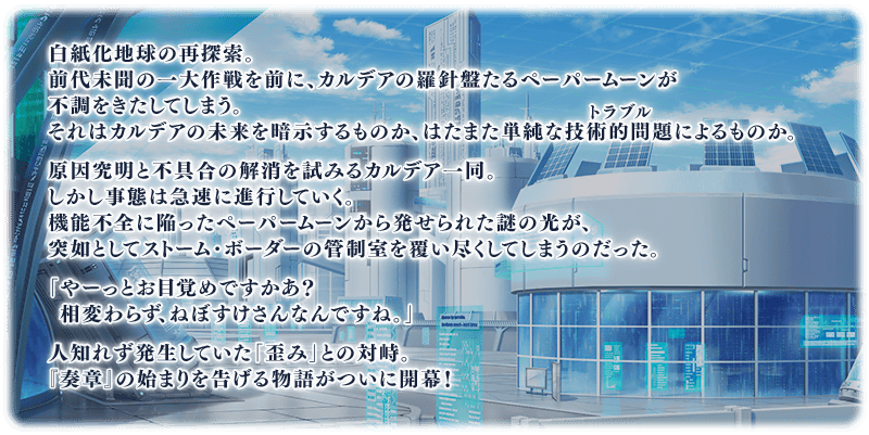 それに包まれ訪れた世界で待ち受ける『歪み』とは。新たな物語の始まりとなる「奏章Ⅰ 虚数羅針内界 ペーパームーン」をお楽しみください!