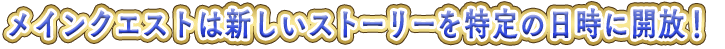 ストーリーを楽しめるメインクエストは特定の日時に開放されるほか、ほかのマスターと協力して戦う特殊な形式でのバトルをクリアすることで発生する最後のバトルをクリアすることで開放されます。