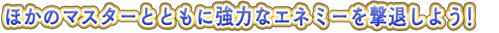 出現するエネミーをほかのマスターと共に撃退することでストーリーを先に進めることができるので、マスター同士の力を合わせてエネミーの撃退を目指しましょう!